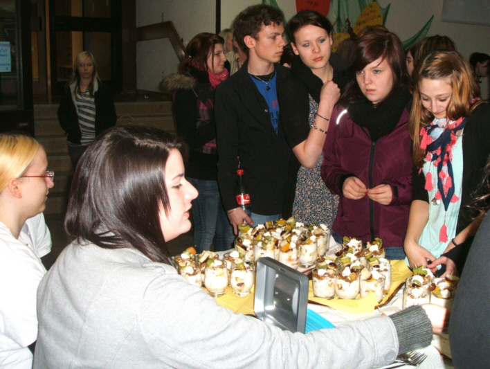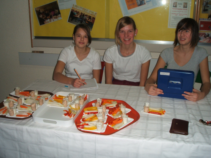 | Andere Schüler bieten einen Obstsalat, ein Knuspermüsli mit Obst, Milchshakes, Pizzasemmeln oder ein "Frühlingsmenü" an. | ![]() |