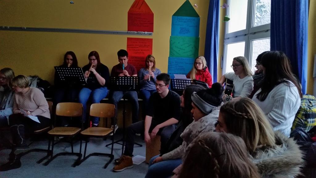 Im Anschluss wurde zum Ausklang auch wieder gemeinsam gesungen. Musikalische Unterstützung gab es durch die Musiklehrkraft Frau Strupf-Daub.
