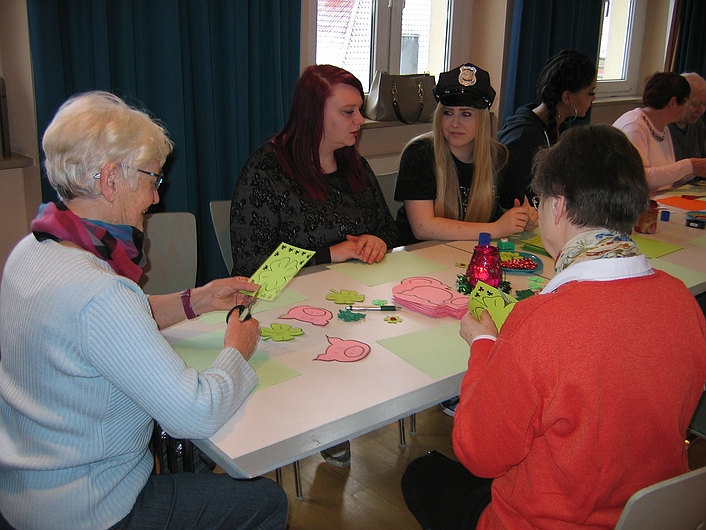 Anlässlich der Aktionswoche zum 20-jährigen Bestehens des Maria-Seltmann-Hauses fand ein „Dialog der Generationen“ mit den 10. Klassen der Berufsfachschule für Sozialpflege statt.