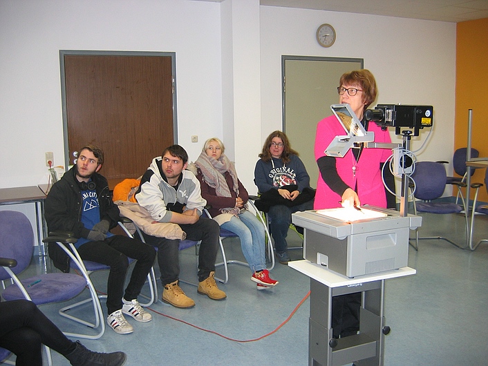Die Bestatterin, Frau Schmidt aus Vohenstrauß, hatten sich die Schüler aus der 11. Klasse mit ihrer Klassleitung eingeladen, um im Rahmen des Faches Lebenszeit- und Lebensraumgestaltung über mögliche Bestattungsformen und Rituale unterrichtet zu werden.
