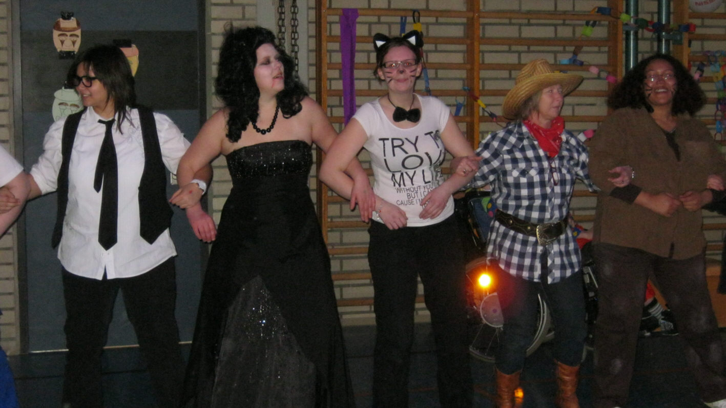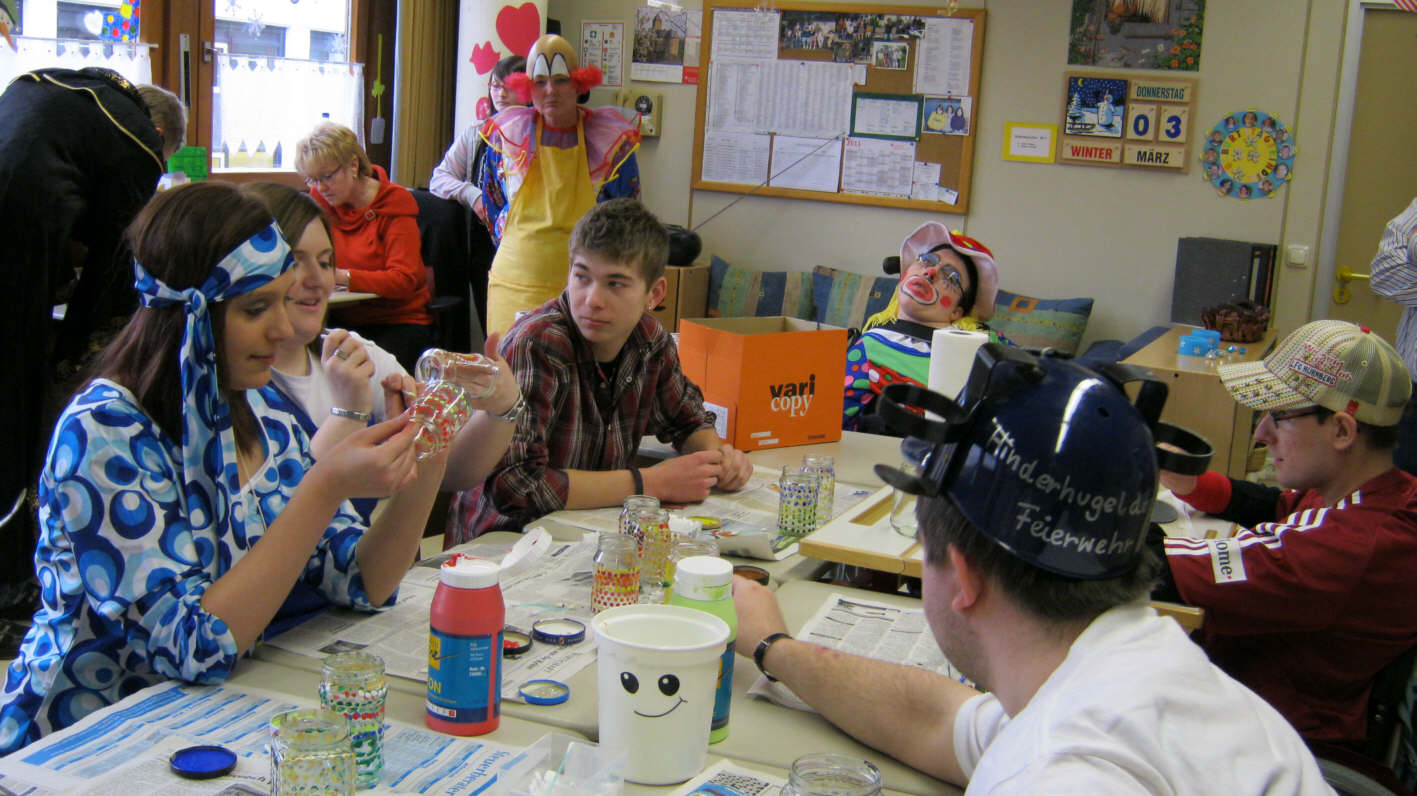Bevor die Rektorin der Förderschule, Frau Rothmund, die Gäste begrüßen konnte, hatte bereits eine mehrwöchige Planungsarbeit stattgefunden. Sie wurde geleitet von Herrn Hüttner, Lehrer am HPZ, und Frau Ingrid Ochmann, Fachlehrerin an der Berufsfachschule für Sozialpflege. Die Klasse S 11 A bereitete bereits im Unterricht verschiedene Workshops vor und konnte diese am Vormittag des „naschen Pfinster“ anbieten. Die Vorbereitungen für eine gemeinsame Faschingsparty wurden gemeinsam gemeistert und die Mehrzweckhalle verwandelte sich in eine Faschingshochburg.