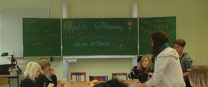 Fast ausschließlich sehr gute Noten gab es bei der Bewertung des gemeinsamen Klassenfrühstücks in den 10. Klassen. Bereits in der ersten Schulwoche durften die „neuen 10. Klassen“ eigenverantwortlich ein gemeinsames Frühstück planen, vorbereiten, durchführen und darüber reflektieren, um dadurch die Schritte des Handlungsschemas kennenzulernen.