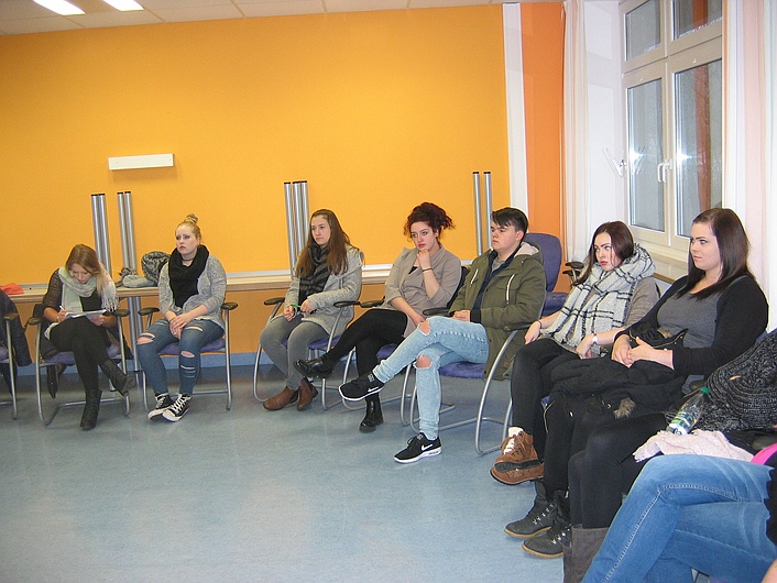 Weil sich viele Schüler nach ihrem Abschluss als staatlich geprüfter Sozialbetreuer und Pflegefachhelfer zum Gesundheits- und Krankenpfleger weiterbilden möchten, informierte sich die 11. Klasse vor Ort in der Berufsfachschule für Kinderkrankenpflege in Neustadt.