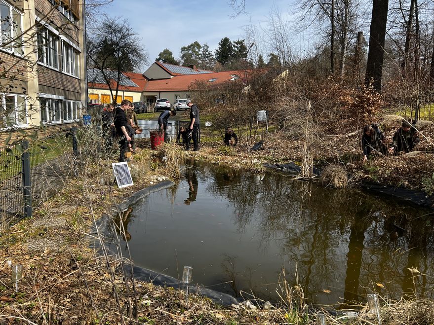 Unter der Federführung von Frau Stahl und mit Unterstützung der Referendarin Frau Bausewein wurde das Schulteichprojekt im Rahmen des Unterrichtsfaches Ökologie und Gesundheit angegangen.