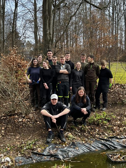 Kurzentschlossen legte das BGJ Landwirtschaft AGGS a am 20.03.2024 Hand an. Fast auf den Tag genau drei Jahre nach der letzten Aktion durch die damaligen Referendare säuberten wir das Gelände des Biotops von Unmengen an Laub, hunderten Eichenschösslingen, Müll und Algen.