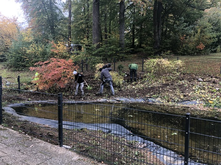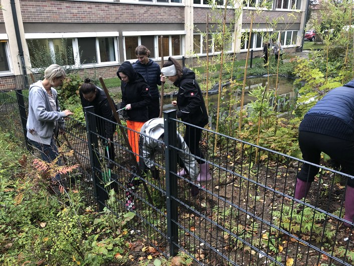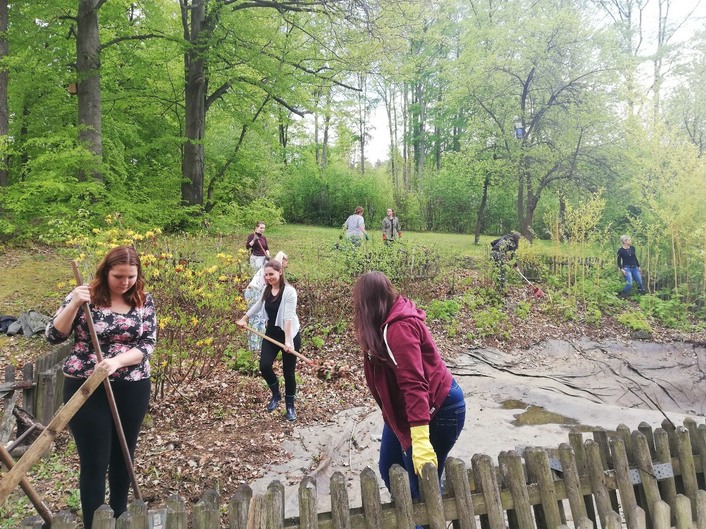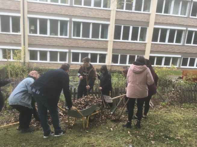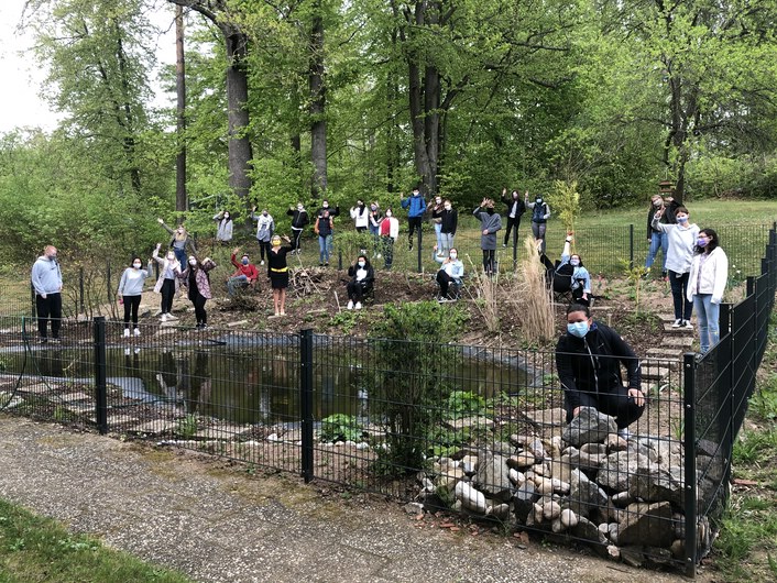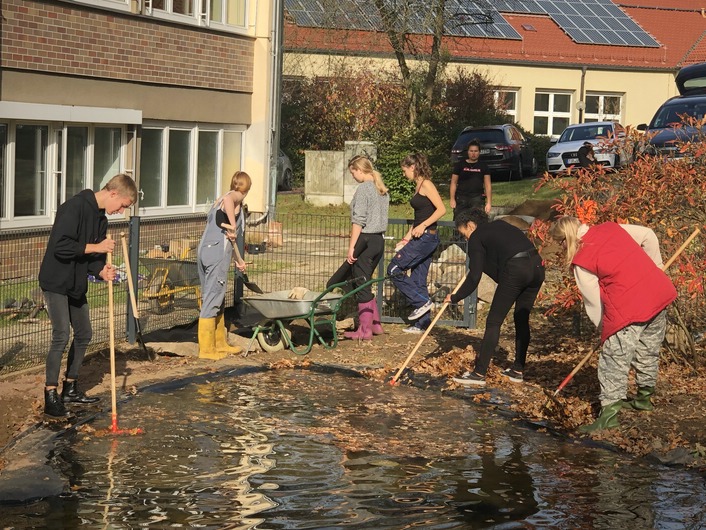 Dafür sprangen unsere Referendare von 20/21 ein und halfen am Teich. Sie harkten die Blätter weg und entfernten das Unkraut. Wir bedanken uns für die Unterstützung.