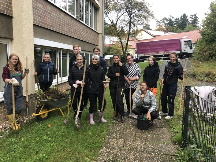 So ein großes Projekt kann nur mit der notwendigen Unterstützung auf verschiedenen Ebenen gelingen. In diesem Rahmen möchten wir, die K11C mit Frau Stahl und Frau Bausewein, uns auch bei Frau Thimm-Böhringer vom Landratsamt, Herrn Dobmayer für die strukturelle und finanzielle Unterstützung und natürlich auch bei den Lehrkräften für die Pflanzenspenden bedanken.
