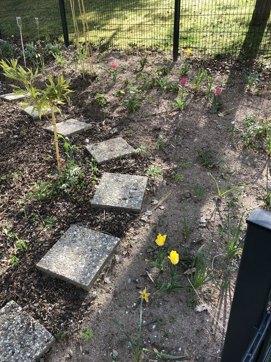 Die ersten Blumen um unseren Teich tragen ihre Blüten und verschönern die anstrengende Corona-Zeit mit ihrem farbenfrohen Anblick. Unsere Narzissen fangen an, sich zu zeigen, und auch andere Blumen, wie z.B. die Tulpen, kommen schon aus der Erde. |