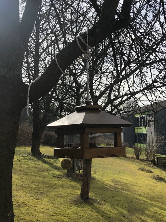 Wir danken dem Spender unseres Vogelhäuschens, Sophies Opa, der sich ebenfalls an unserem Teichprojekt beteiligen wollte. Nicht nur wir freuten uns darüber, sondern auch die Vögel an unserem Teich. Ein Herzliches „Vergelt's Gott“ von der K11b! |