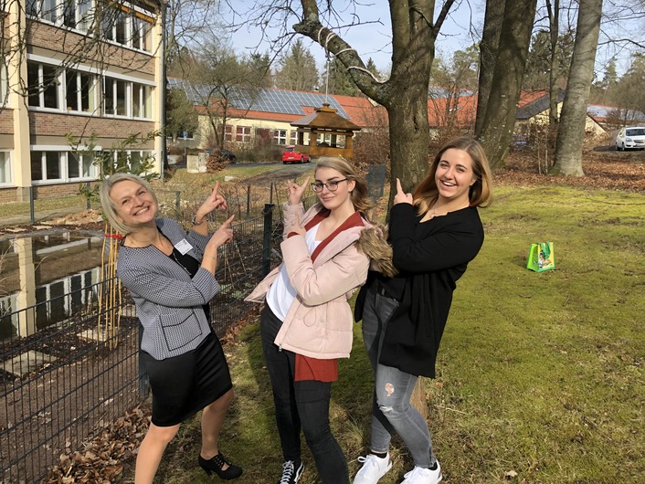 Evelyn Stahl (betreuende Lehrkraft), Verena und Anne (Schüler/ Teichreporter)