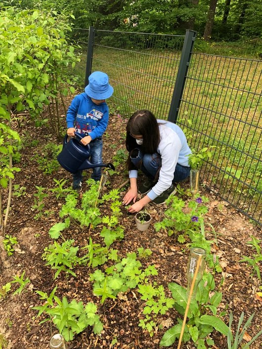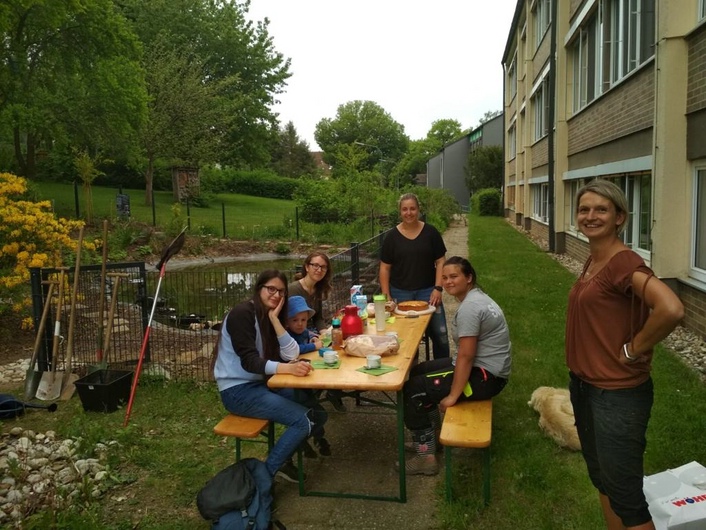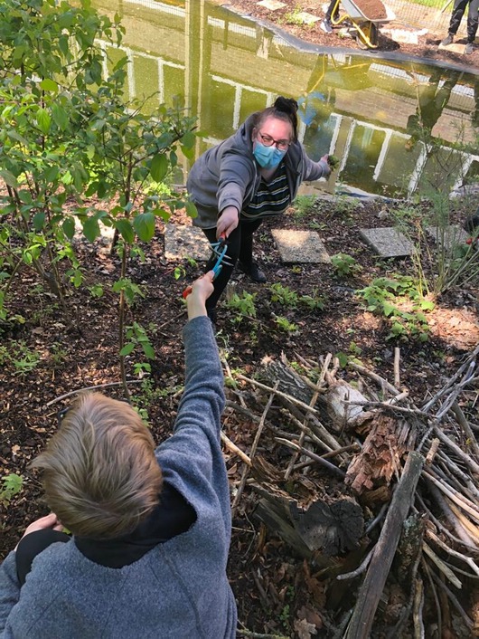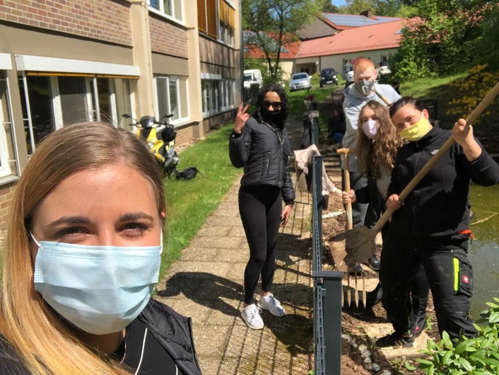 Wir haben wieder begonnen, am Teich zu arbeiten. Ausgestattet mit Mundschutz gingen wir an das Unkrautzupfen, damit unser Teich wieder etwas schöner wird und wir anfangen können, unsere tollen Blumen einzupflanzen. |