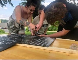 Im nächsten Schritt wurden von den Schüler/-innen der K11C kunstvolle und aussagekräftige Infotafeln zu den einzelnen Kleinprojekten angefertigt. Diese sollen es den Interessierten auch in Zukunft ermöglichen, sich über den ökologischen Zugewinn des Teiches zu informieren.