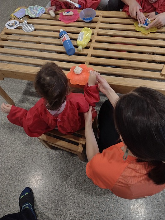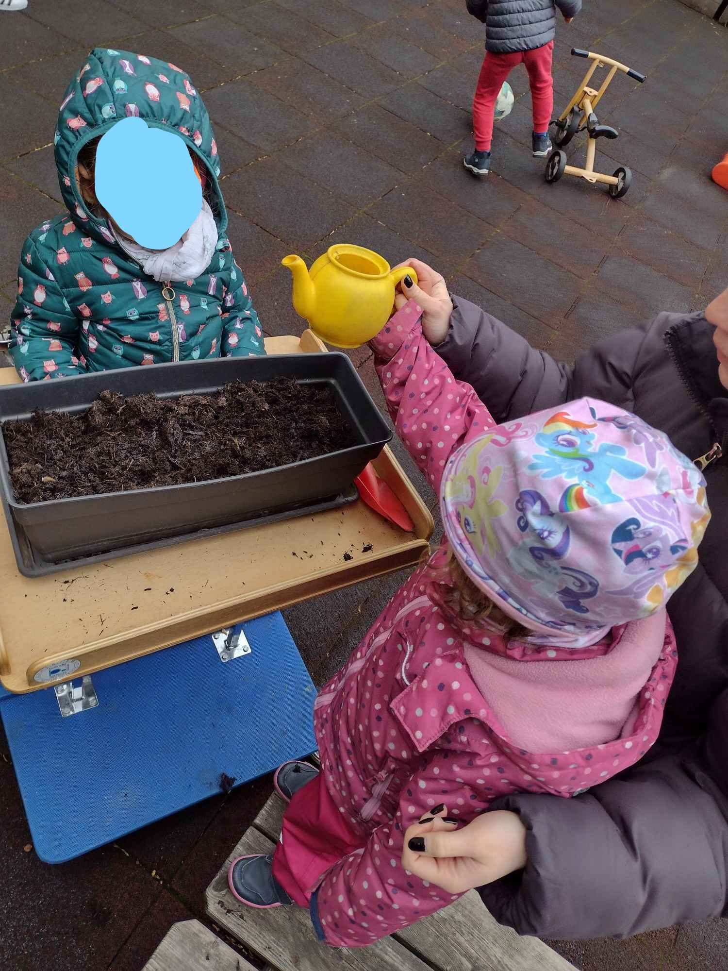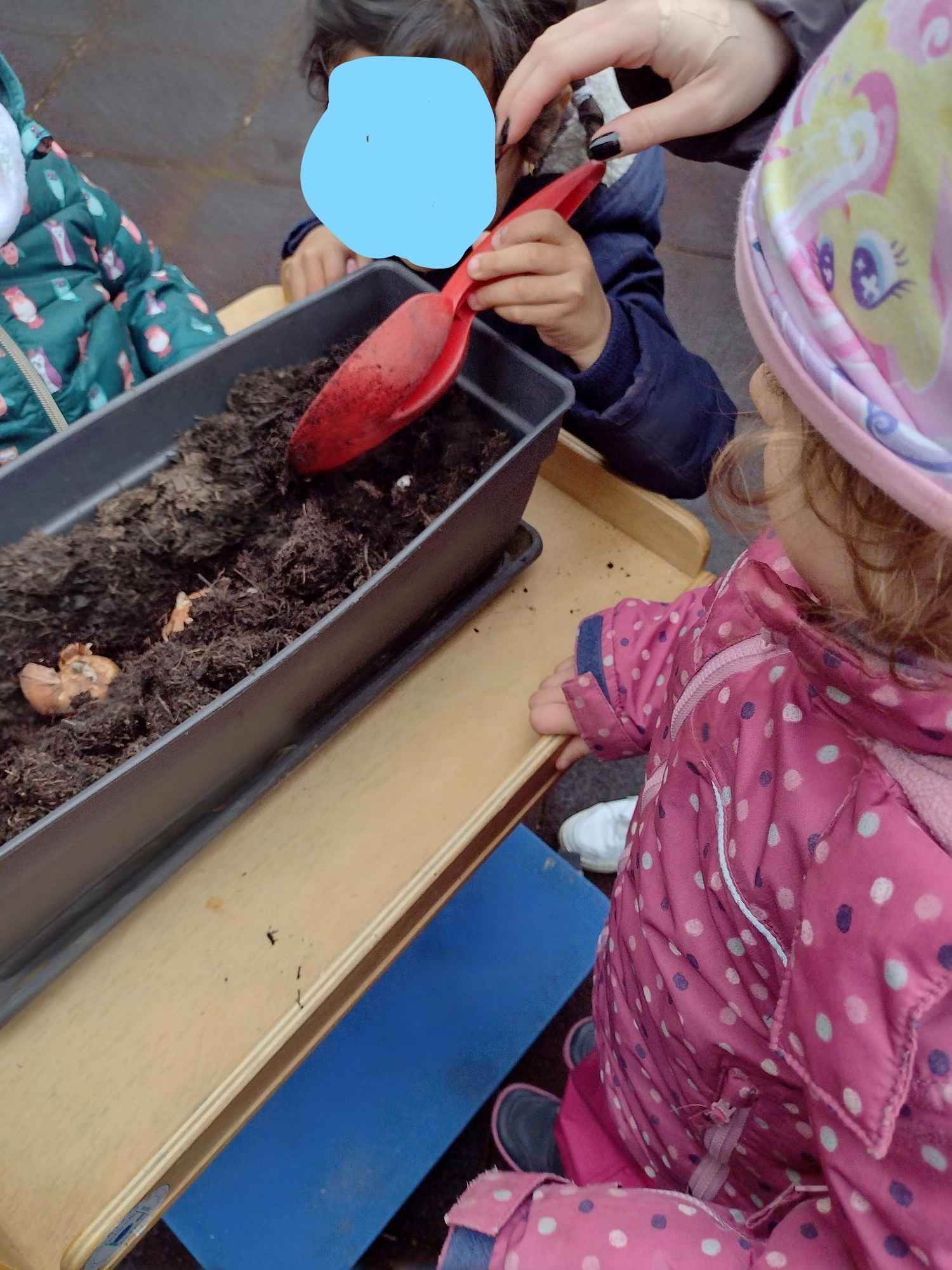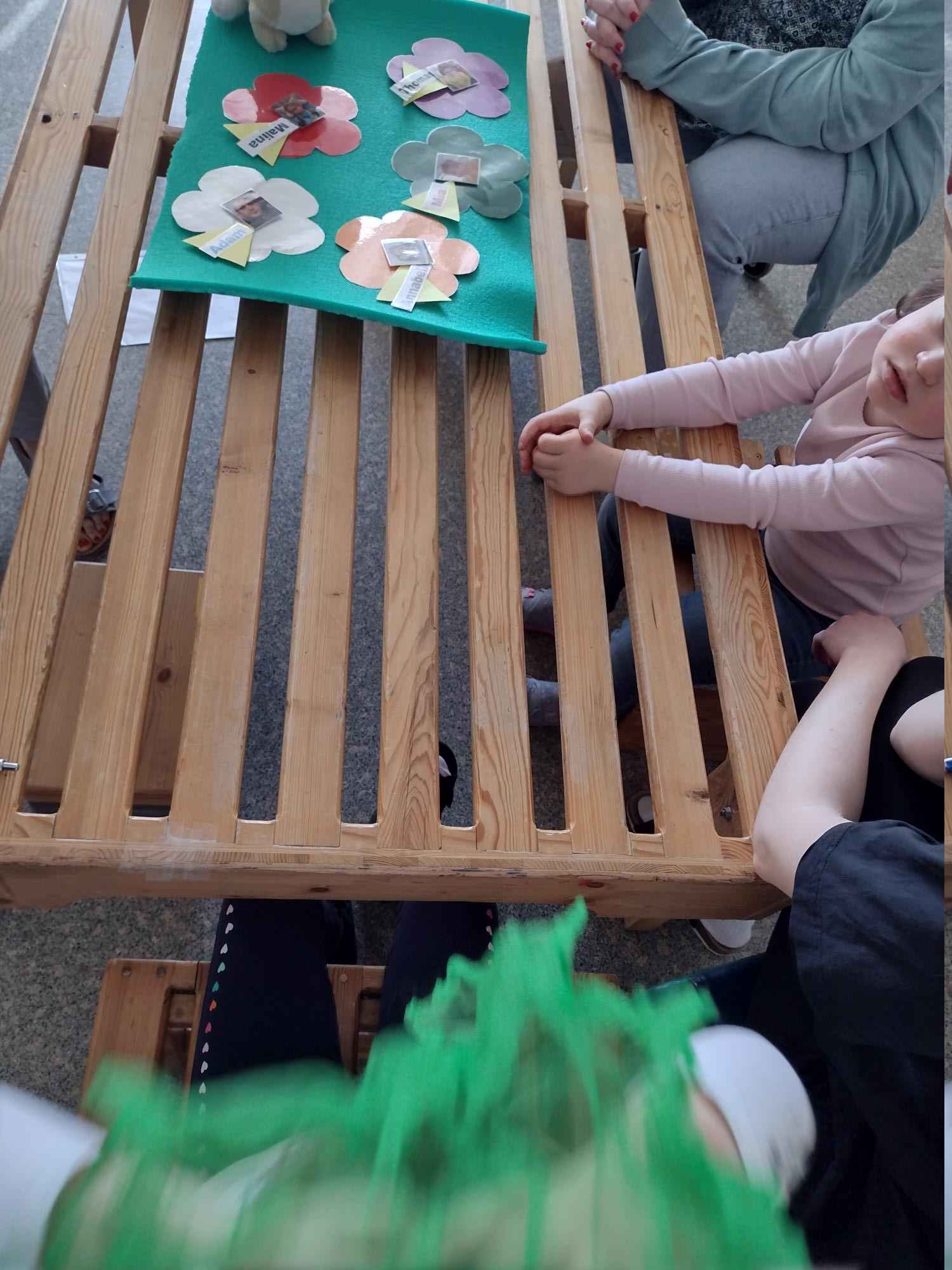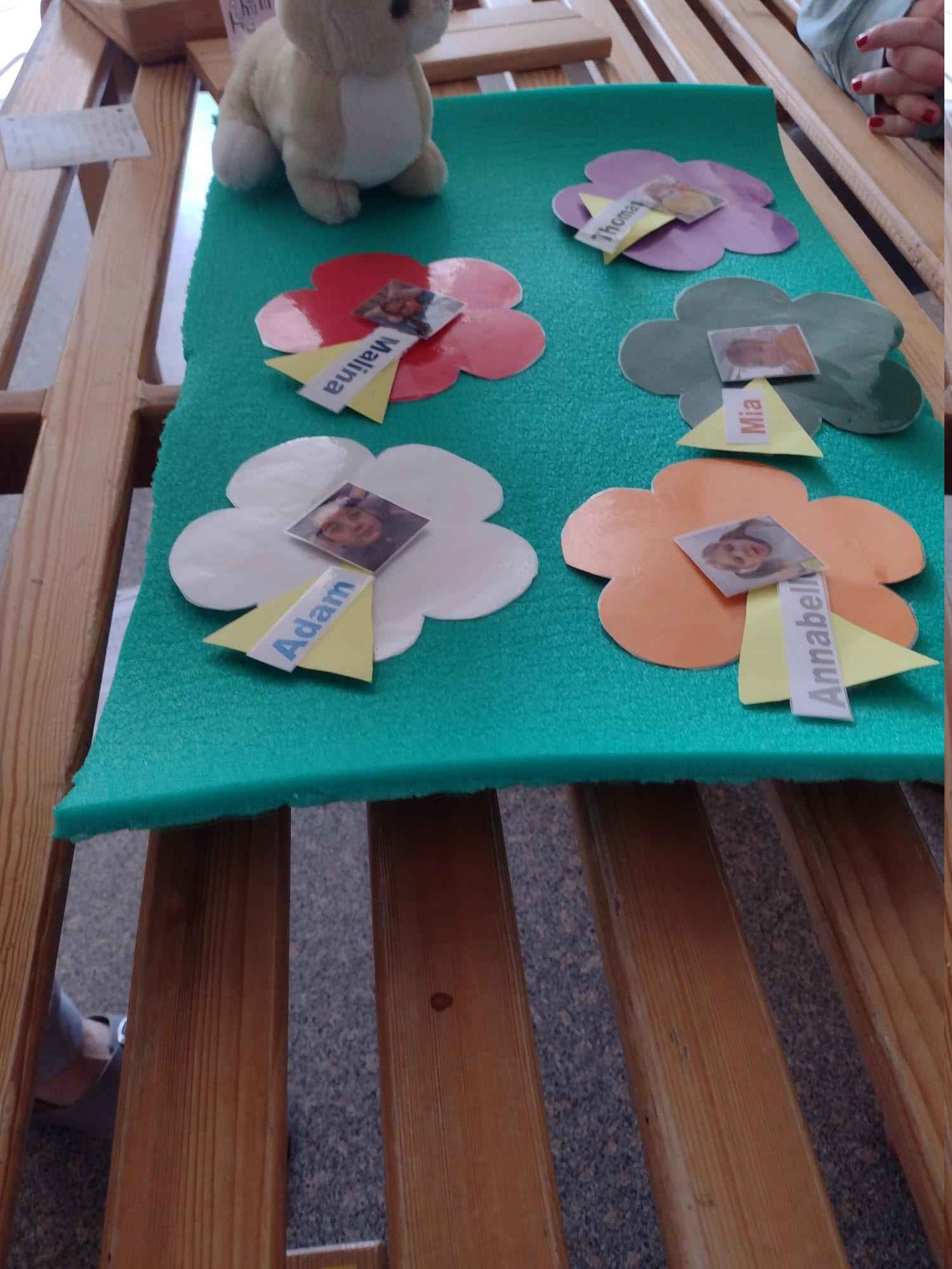 An Ostern geht es auch um Neuanfang und Fruchtbarkeit. Dies symbolisiert der Frühling mit den ersten Blumen und den aufbrechenden Knospen an den Bäumen. So waren die Blumen des Frühlings und ihre Farben ein weiteres Thema. Jedes Kind durfte eine Blumenzwiebel einpflanzen und die Stelle wurde mit einem Namensschild markiert. Auf diese Weise können die Kinder mitverfolgen, wie ihre eigene Blume zu wachsen beginnt. In der Snoezelen-Ecke erzählte ich dazu eine Blumenfantasiereise. Das bot den Kindern die Möglichkeit, sich gemeinsam zu entspannen und ihre sozialen Interaktionen auszubauen.
