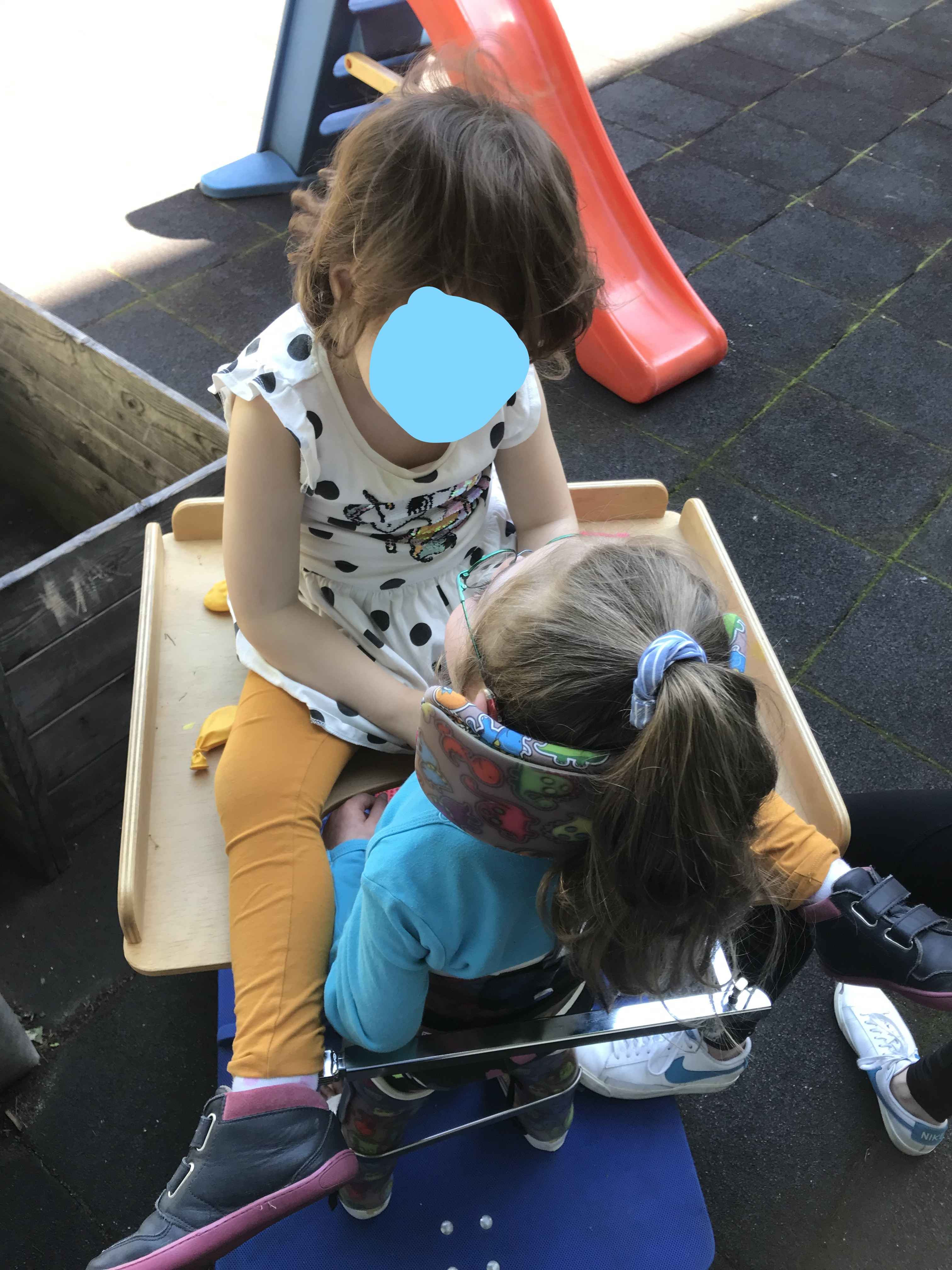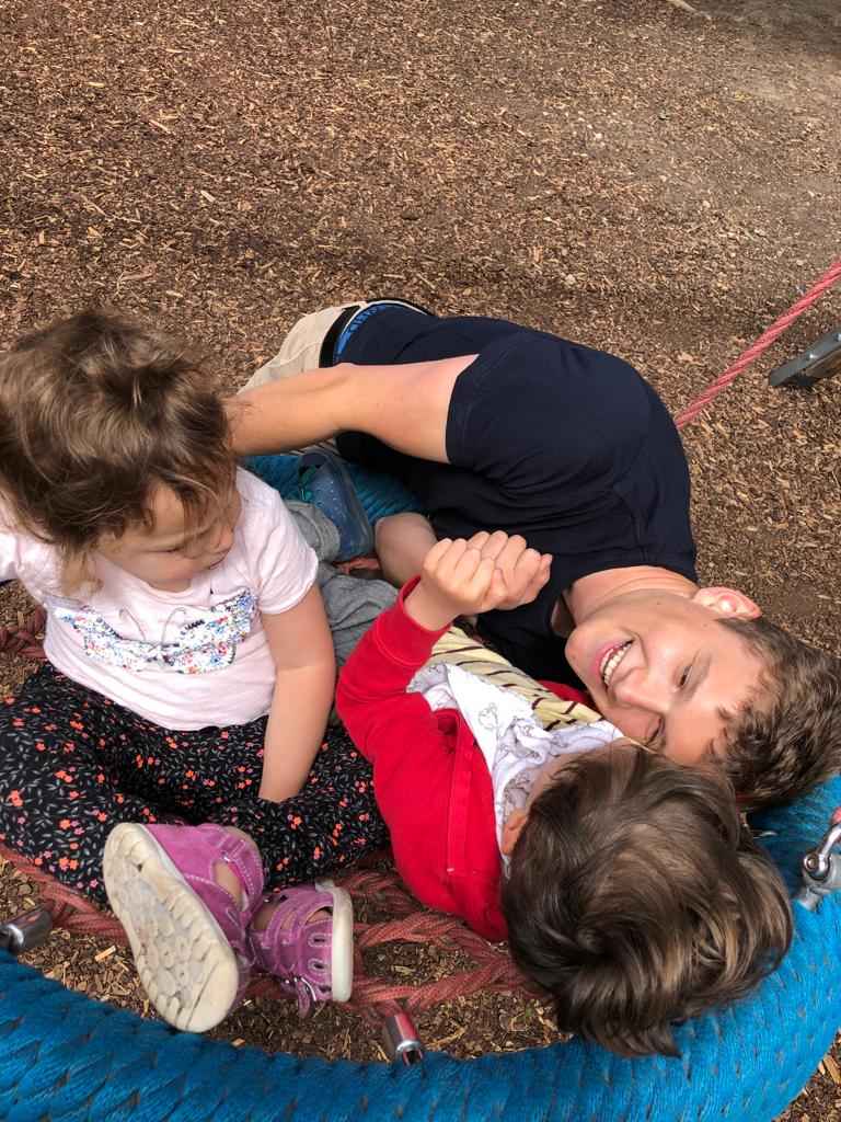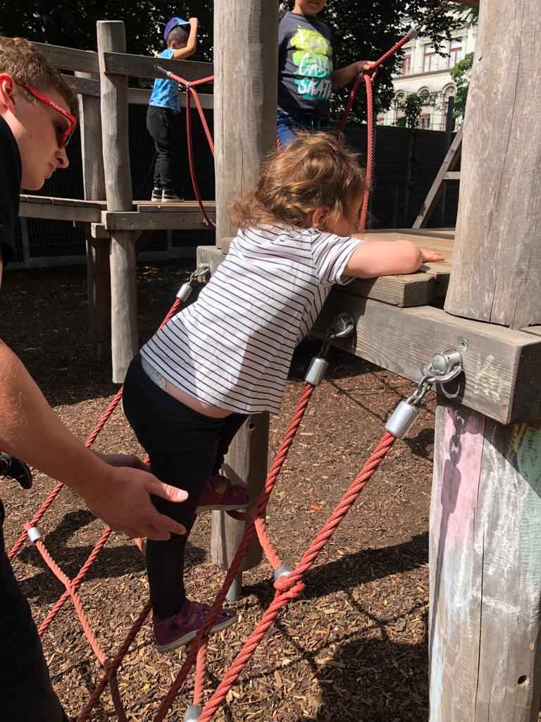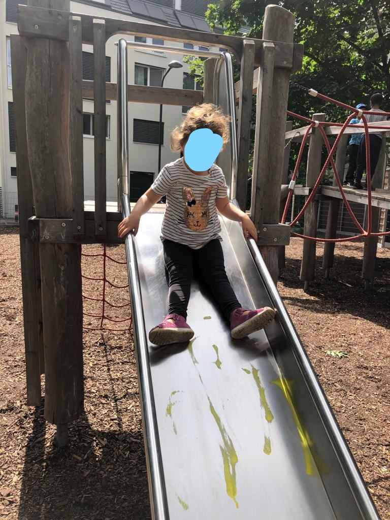 Ende April war es endlich wieder möglich, einen Ausflug zu planen. Aufgrund der Corona Regeln durften wir bisher das Haus nicht verlassen. Als die ersten warmen und schönen Tage kamen, nutzten wir das Wetter aus und spazierten in der Umgebung der Kita bis zu einem nahegelegenen Spielplatz. Die gehfähigen Kinder konnten balancieren und mit unserer Unterstützung klettern und rutschen, während die basalen Kinder in der Vogelnestschaukel schaukelten.