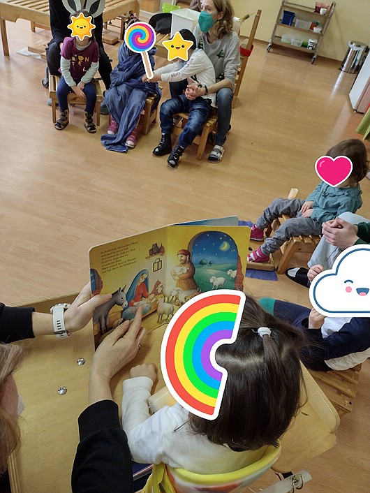 Am 22. Dezember feierten wir im Kindergarten Weihnachten. Wir trafen uns mit der zweiten Mehrfachtherapeutischen Gruppe und setzten uns in einen Kreis im Therapieraum der KM2. Wir teilten Orff-Instrumente aus und sangen die ersten Weihnachtslieder. Im Anschluss spielten wir mit den Kindern ein kleines Gruppenspiel über die Geburt Jesu in Bethlehem. Im Gruppenraum klingelte die Glocke vom Christkind. Unter dem Baum lagen Geschenke für beide Gruppen. Bevor die Bescherung begann und alle Kinder gemeinsam die Geschenke öffnen konnten, sangen wir die Lieder noch einmal. Nach der Bescherung verabschiedeten wir uns von der KM2 und gingen zurück in unseren Gruppenraum. Hier konnten die Kinder die neuen Spielsachen ausprobieren und wir ließen den schönen Tag gemeinsam in Ruhe ausklingen.