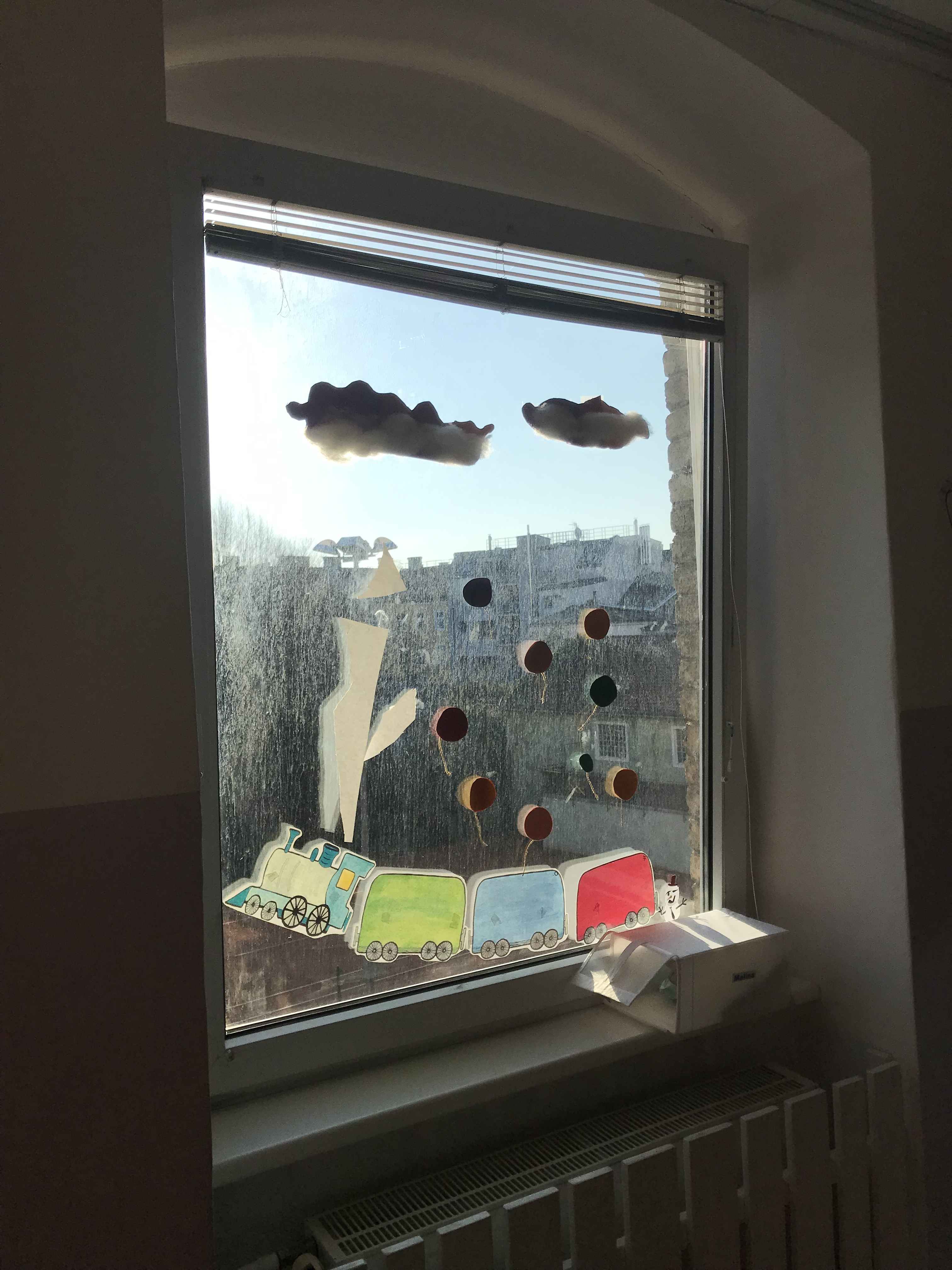 Für die Dekoration des Gruppenraumes bastelten und malten die Kinder Bilder. Somit nahmen sie an der Gestaltung ihres Raumes aktiv teil. Dabei ist allerdings viel mehr zu beachten als in einer gewöhnlichen Kindergartengruppe. Kinder mit Beeinträchtigung können schnell reizüberflutet sein. Es sollten bewegliche, von der Decke hängende Deko-Elemente vermieden werden. Des Weiteren sollte der Raum immer erkennbar sein und neue Dekoration nur nach und nach ergänzt werden. Einige Kinder können, auf Grund bestimmter Wahrnehmungsdefizite, auf plötzliche visuelle Veränderungen des gewohnten Raumes die Sicherheit verlieren. Die Kinder können sich dann nicht mehr auf die Programme oder Therapien einlassen. Sie sind dann hauptsächlich damit beschäftigt die neuen Reize aus der Umgebung zu verarbeiten. Trotzdem ist es wichtig die Dekoration passend zum Thema zu gestalten, da die Kinder so die Verknüpfung zum Thema besser herstellen können. Außerdem ist eine Wiedererkennung gegeben, wenn die Kinder am Gestalten des Raumes beteiligt sind. Die erlernten feinmotorischen Fähigkeiten beim Malen eines Bilds festigen sich zum Beispiel besser im Gehirn, wenn die Kinder die Bilder an den Wänden sehen können.