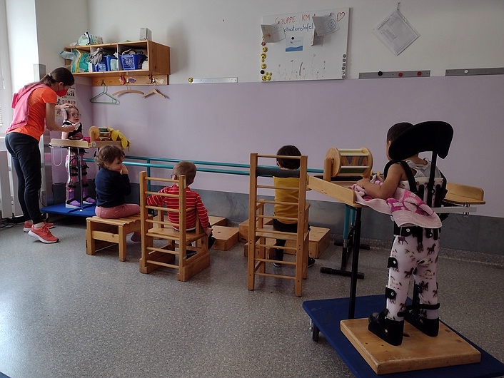 Meine Einrichtung arbeitet mit konduktiv mehrfachtherapeutischem Ansatz, Montessoripädagogik und Integrationsgedanken. In meiner Gruppe sind derzeit 8 Kinder, sowohl mit körperlicher als auch mit geistigen Beeinträchtigungen.