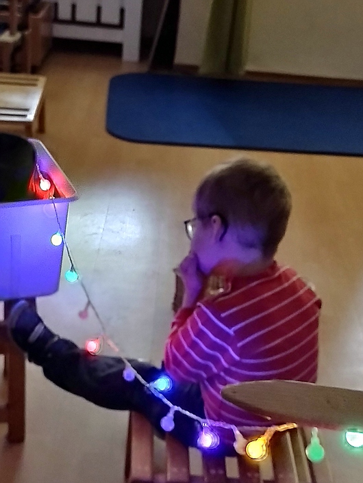 Wir starteten in den November mit dem Thema Licht und Dunkelheit. Dabei entdeckten die Kinder meiner Gruppe alle Facetten der Dunkelheit und des Lichtes. Bei unterschiedlichen Aktivitäten im visuellen Bereich konnten die Kinder mit unterschiedlichen Farben experimentieren und Dinge in der Dunkelheit entdecken, die mit Licht beleuchtet wurden.