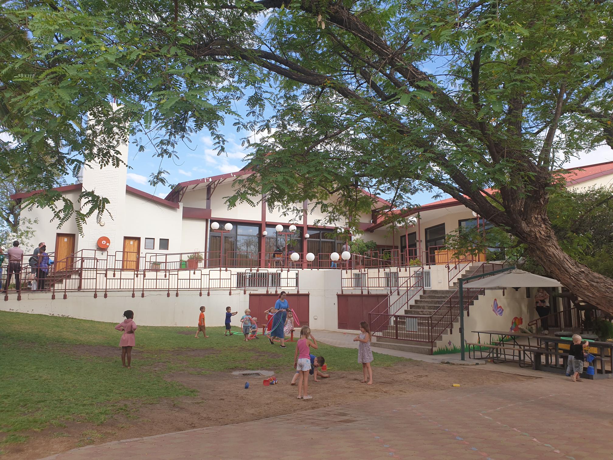 Freitag war der 1. Praktikumstag der Studierenden im Kindergarten West. Die Einrichtungsleitung Frau Rattay zeigte uns sowohl die Räumlichkeiten als auch den wunderbar schattigen Außenbereich. Aufgrund des warmen Klimas halten sich die Kinder vorwiegend im Garten auf. Im angrenzenden Gemeindezentrum durften wir einem evangelischen Kindergottesdienst beiwohnen, den André Graf auf Deutsch hielt.