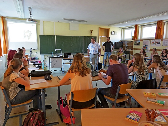 Was gab es nun am Nachmittag zu bewältigen? Dazu gehörte beispielsweise die Aufgabe, geeignete Unterkünfte – sofern sie nicht von den Bildungspartnern angeboten werden – zu organisieren. Aber auch die Fahrten vom Flughafen zur Unterkunft und von dort zur jeweiligen Praxiseinrichtung waren zu planen. Stadtpläne wurden studiert, die Verbindungen mit den öffentlichen Verkehrsmitteln gecheckt, E-Mails an die Einrichtungen formuliert usw. Betreut wurden die begeisterten Schüler bzw. Studierenden dabei von Frau Hieber, Herrn Piehler und Frau Weber-Zacher. Zudem waren Steckbriefe für die Einrichtungen vorzubereiten und Vorstellungsvideos zu drehen. Letzteres sorgte natürlich für viel Aufregung und auch Heiterkeit.