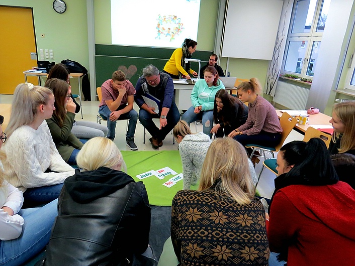 Am Freitag, den 29.11.2019, hatten die 14 Erasmus-Teilnehmer im Rahmen eines Nachbereitungstreffens am BSZ Gelegenheit, ihre Erfahrungen und Erlebnisse, die sie in verschiedenen sozialpädagogischen Einrichtungen im europäischen Ausland gesammelt haben, zu reflektieren.