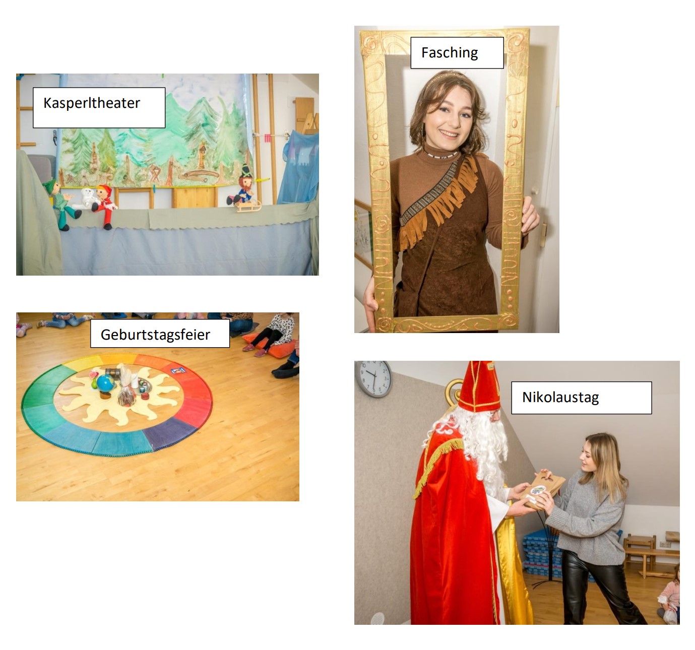 Die Zeit des Feierns ist etwas Besonderes und sticht aus dem Alltag heraus. Der Jahreskreis erleichtert die Einschätzung des Zeitgefühls, bietet Orientierung und ermöglicht Anteilnahme an bewussten Festen und Ritualen. Dabei werden die Kinder aktiv eingebunden.