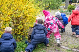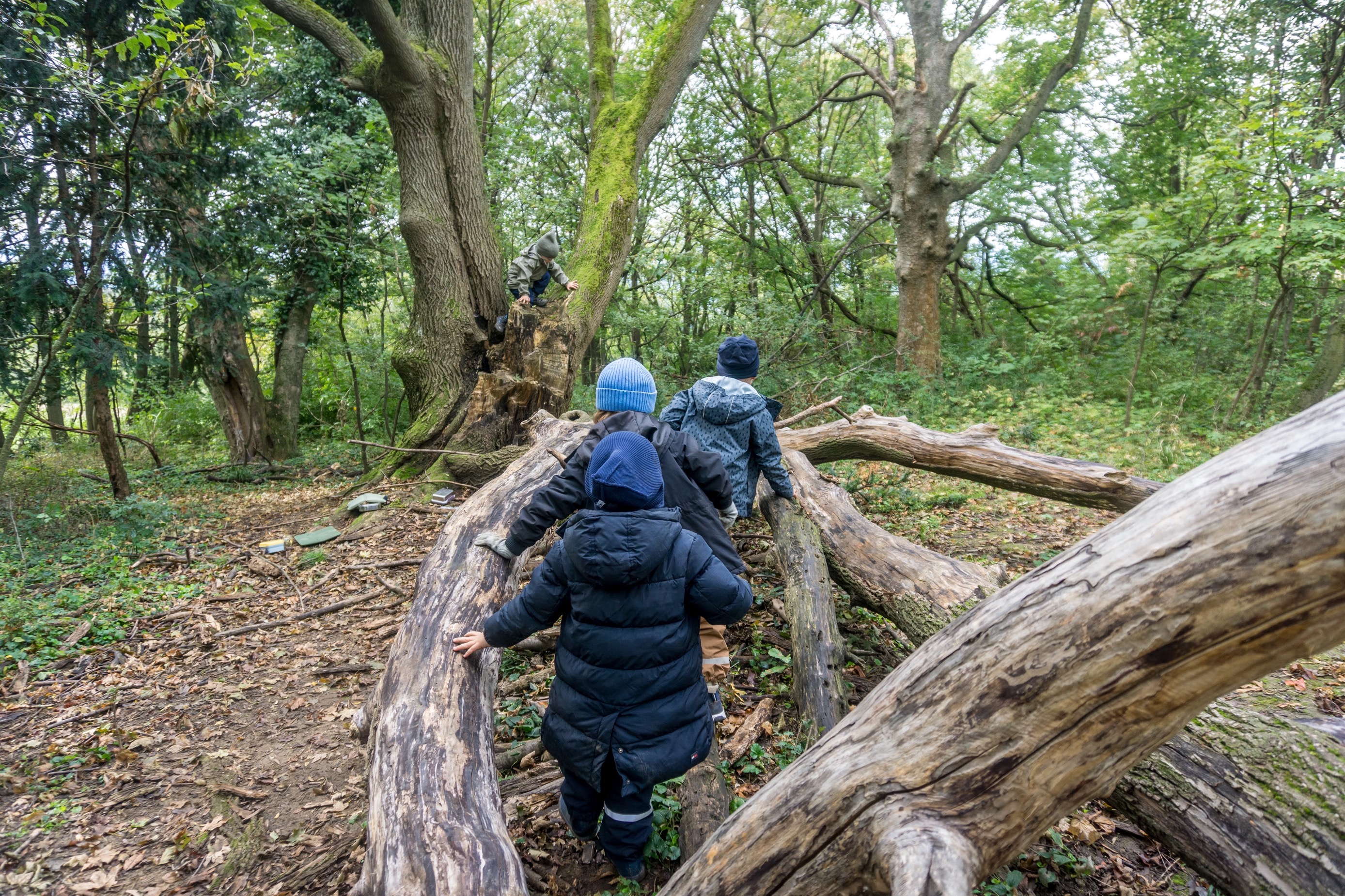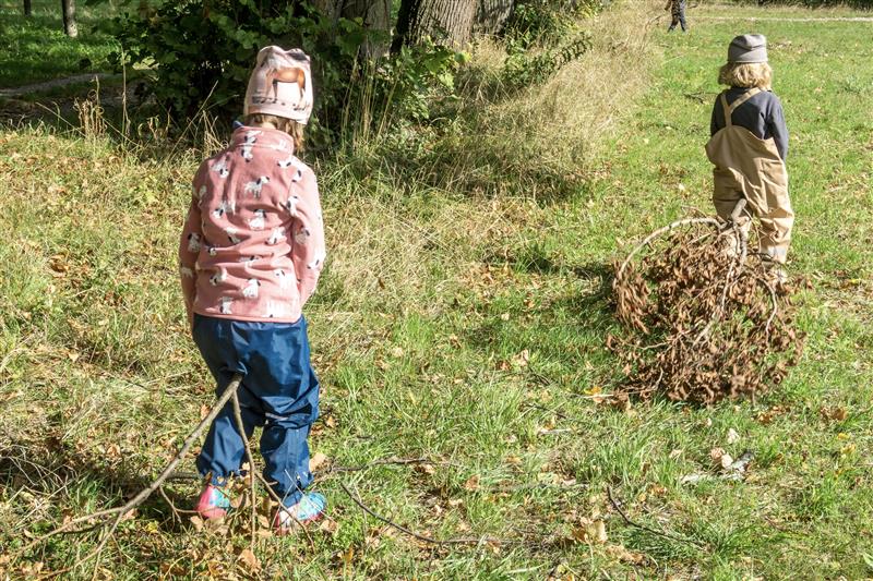 Im Wald angekommen, ist es den Pädagog:innen wichtig, dass sich die Kinder miteinander oder auch mit sich selbst beschäftigen können und es wagen, ihr Umfeld zu erforschen. Denn dieses bietet Anlass genug, kreativ und aktiv zu werden. Deshalb wird sich während der Waldtage fast ausschließlich der Freispielzeit gewidmet. Der Waldtag endet mit einer Waldgeschichte.