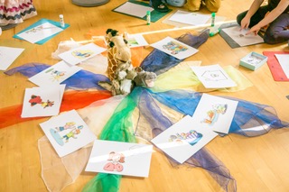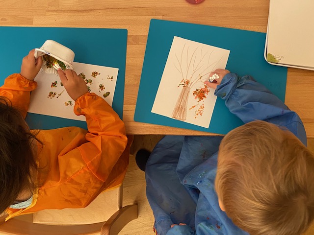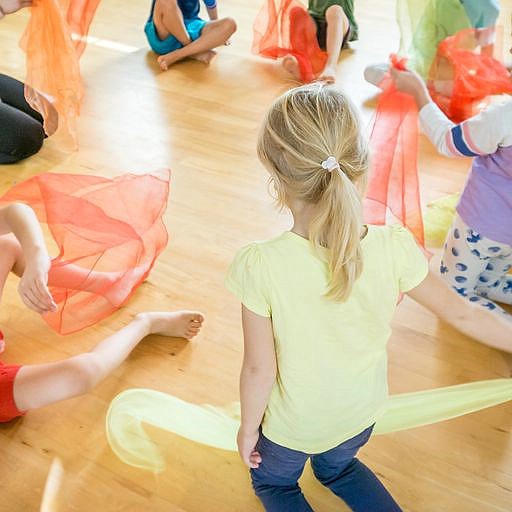 Eine Experimentierphase und ein Tanz mit Chiffontüchern, die unsere Herbstblätter darstellen sollen, sorgten dafür, dass sich die Kinder gut aufwärmen konnten.