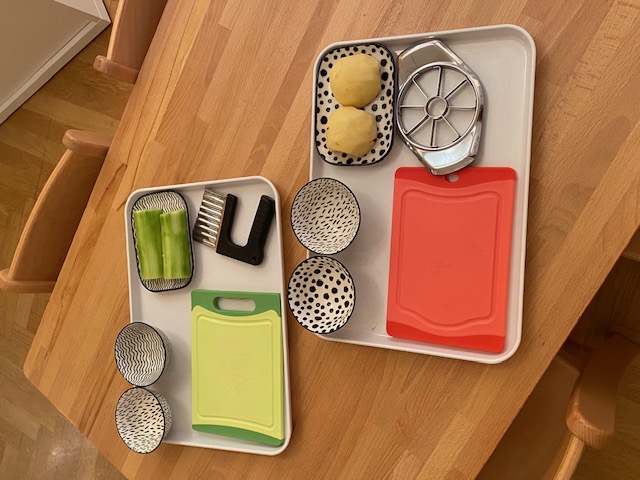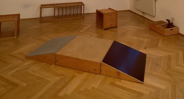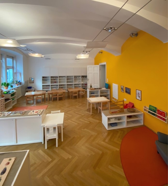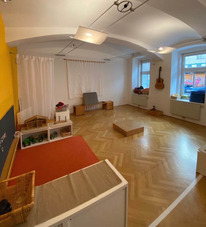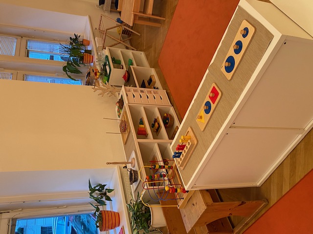 Zu meinen Aufgabenbereichen als Praktikantin gehört ebenso die Unterstützung und Begleitung der Kinder, die die Kleinkindgemeinschaft, das sogenannte „kleine Haus“ im Montessorihaus Reisnerstraße, besuchen. Das große sowie das kleine Haus verbindet ein Standort, welcher durch eine Trennung im Eingangsbereich ersichtlich gemacht wird. Der Hof sowie das Mittagessen, welches im Kinderhaus für 3-6-Jährige zubereitet wird, steht beiden Einrichtungsbereichen zur Verfügung. Eine Montessori-Kleinkindgemeinschaft ist ein Ort, wo Kinder ab 1 ¼ bzw. 1 ½ Jahren zusammenkommen. Die Kleinkindgemeinschaft des Montessorihauses Reisnerstraße wird von 2-3 ½- jährigen Kindern besucht. Die Gruppengröße umfasst aktuell 12 Kinder, die von 2 Pädagog:innen begleitet werden. Für diese Begleitung ist Zuwendung in Form von emotionaler Wärme und die Berücksichtigung der Bedürfnisse eines jeden einzelnen Kindes unabdingbar. Neben dem Fachpersonal, finden sie eine an ihren eigenen Bedürfnissen orientierte „vorbereitete Umgebung“ / Raumgestaltung vor. Diese umfasst Elemente für die Bewegungsentwicklung, grob- sowie feinmotorischer Fähigkeiten, Materialarbeiten zum Training der Auge-Hand-Koordination sowie ein großes Angebot an alltagspraktischen Tätigkeiten. Der Besuch einer solchen Einrichtung bietet erste Erfahrungen sozialer Begegnungen von sehr jungen Kindern untereinander. Die Weiterentwicklung erster sozialer Kompetenzen findet statt. Auch Sprache, Musik und Kunst stellen grundsätzliche Bestandteile des Alltags in einer Montessori-Kleinkindgemeinschaft dar.