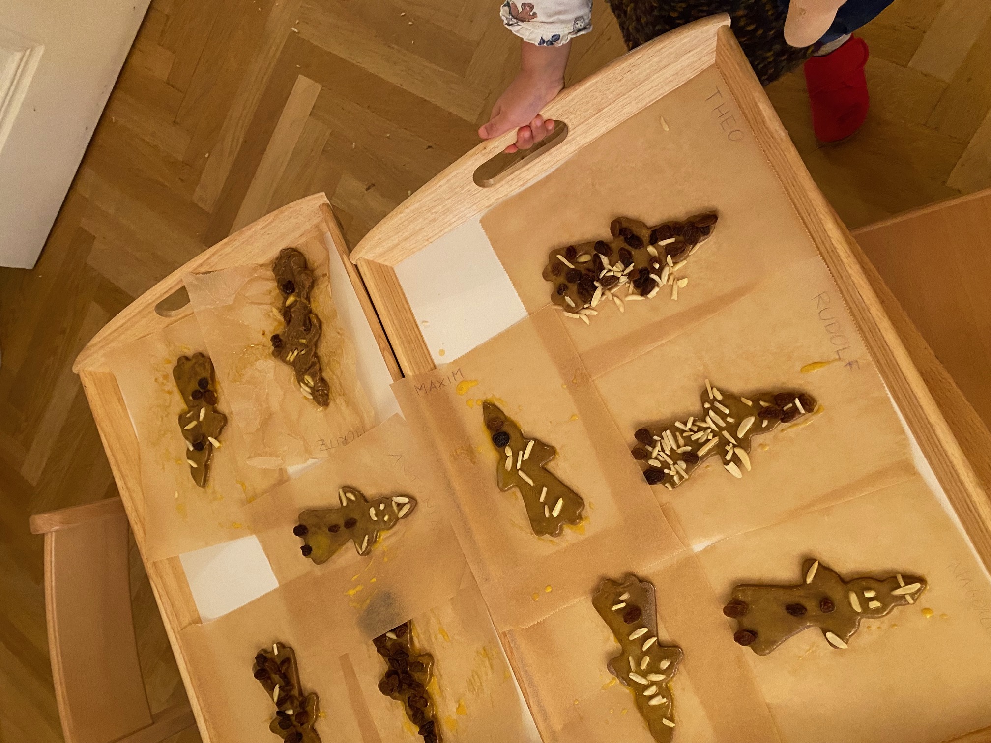 Ein paar Tage später kümmerten wir uns um den Inhalt der Säckchen. Zusammen backten wir Nikolo-Plätzchen, die die Kinder selbst verzieren durften, um sie wie kleine Nikoläuse aussehen zu lassen. Diese Aktivität war nicht nur ein Highlight, sondern auch eine schöne Einstimmung auf das bevorstehende Fest.